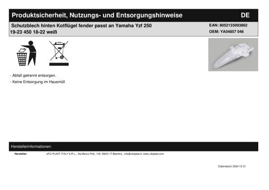 | Titel: | Schutzblech hinten Kotflügel fender passt an Yamaha Yzf 250 19-23 450 18-22 sw |
