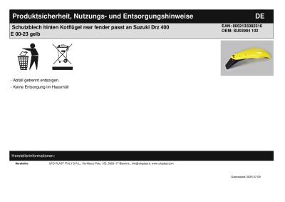 Titel: | Schutzblech hinten Kotflügel rear fender passt an Suzuki Drz 400 E 00-23 gelb |
