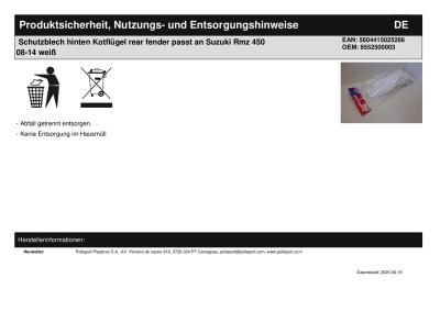Titel: | Schutzblech hinten Kotflügel rear fender passt an Suzuki Rmz 450 08-14 weiß |