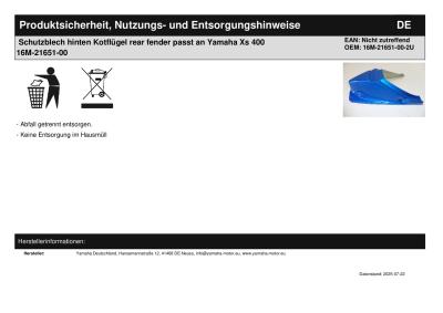 Titel: | Schutzblech hinten Kotflügel rear fender passt an Yamaha Xs 400 16M-21651-00 |