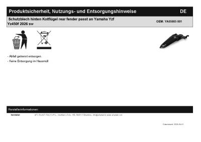 | Titel: | Schutzblech hinten Kotflügel rear fender passt an Yamaha Yzf Yz450f 2026 sw |