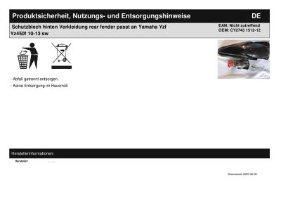 Titel: | Schutzblech hinten Verkleidung rear fender passt an Yamaha Yzf Yz450f 10-13 sw |