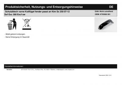 | Titel: | Schutzblech Kotflügel fender passt an Ktm Sx Sxf Exc 125 250 300 350 450 500 sw |