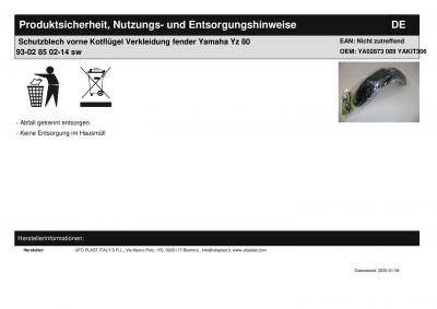 Titel: | Schutzblech vorne Kotflügel Verkleidung fender Yamaha Yz 80 93-02 85 02-14 sw |