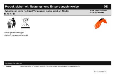 Titel: | Schutzblech vorne Kotflügel Verkleidung fender passt an Ktm Sx 85 13-17 or |