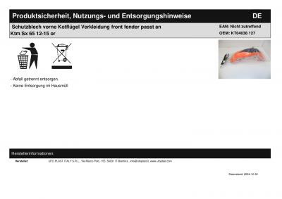 Titel: | Schutzblech vorne Kotflügel Verkleidung front fender passt an Ktm Sx 65 12-15 or |