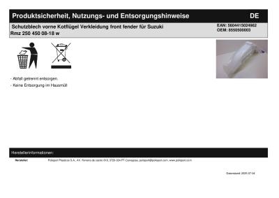 | Titel: | Schutzblech vorne Kotflügel Verkleidung front fender passt an Suzuki Rmz 250 weiß |