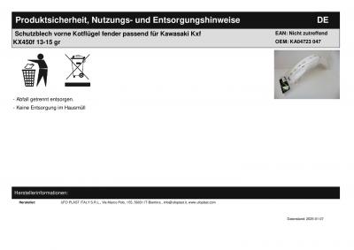 | Titel: | Schutzblech vorne Kotflügel fender passend für Kawasaki Kxf KX450f 13-15 w |