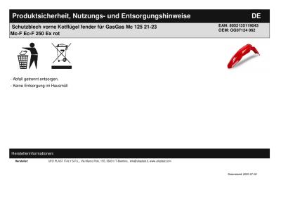 Titel: | Schutzblech vorne Kotflügel fender passt an GasGas Mc 125 21-23 Mc-F Ec-F 250 ro |
