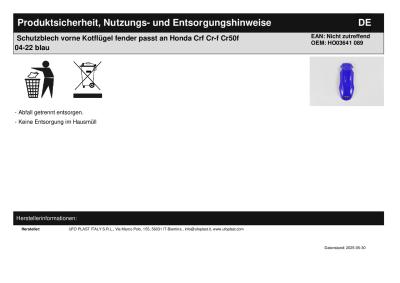 Titel: | Schutzblech vorne Kotflügel fender passt an Honda Crf Cr-f Cr50f 04-22 blau |