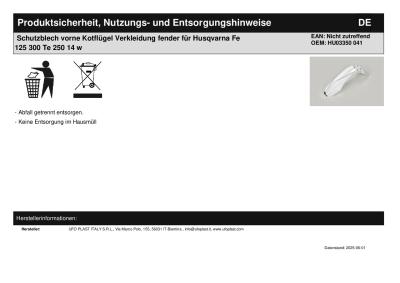 Titel: | Schutzblech vorne Kotflügel fender passt an Husqvarna Fe 250 300 2014 Te 125 w |