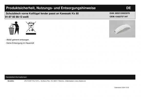| Titel: | Schutzblech vorne Kotflügel fender passt an Kawasaki Kx 80 91-97 85 98-13 grün |