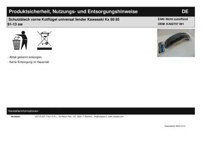 | Titel: | Schutzblech vorne Kotflügel fender passt an Kawasaki Kx 80 91-97 85 98-13 sw |