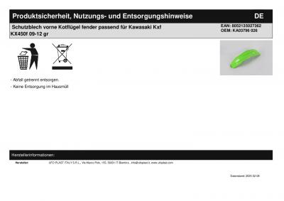 Titel: | Schutzblech vorne Kotflügel fender passt an Kawasaki Kxf KX450f 09-12 gr |