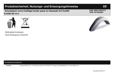 Titel: | Schutzblech vorne Kotflügel fender passt an Kawasaki Kxf Kx250f Kx450f 09-12 w |