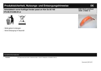 Titel: | Schutzblech vorne Kotflügel fender passt an Ktm Sx 85 105 470.08.010.000.04 or |