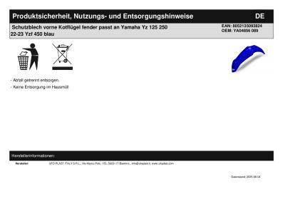 Titel: | Schutzblech vorne Kotflügel fender passt an Yamaha Yz 125 250 22-23 Yzf 450 blau |