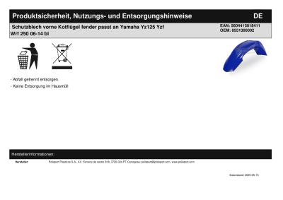 Titel: | Schutzblech vorne Kotflügel fender passt an Yamaha Yz125 Yzf Wrf 250 06-14 bl |