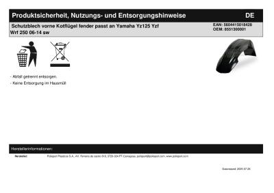 Titel: | Schutzblech vorne Kotflügel fender passt an Yamaha Yz125 Yzf Wrf 250 06-14 sw |