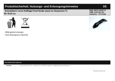 | Titel: | Schutzblech vorne Kotflügel front fender passt an Husqvarna Tc 85 18-25 sw |