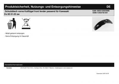 Schutzblech vorne Kotflügel front fender passt an Kawasaki Kx 65 01-23 sw