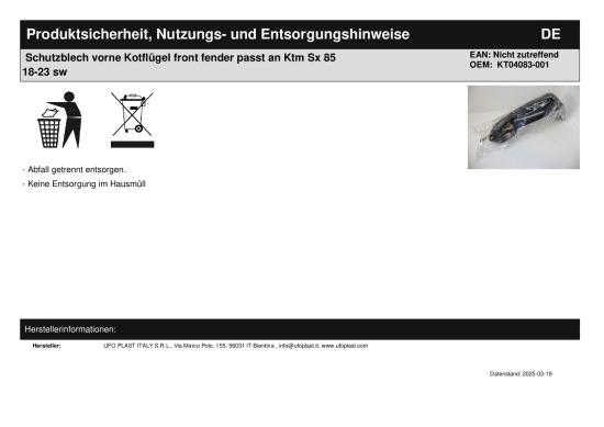 | Titel: | Schutzblech vorne Kotflügel front fender passt an Ktm Sx 85 18-23 w |