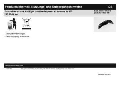Titel: | Schutzblech vorne Kotflügel front fender passt an Yamaha Yz 125 250 02-14 sw |