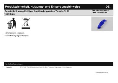 Titel: | Schutzblech vorne Kotflügel front fender passt an Yamaha Yz 85 15-21 blau |