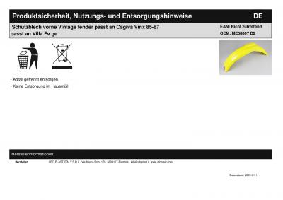 Schutzblech vorne Vintage fender passt an Cagiva Vmx 85-87 passt an Villa Fv ge