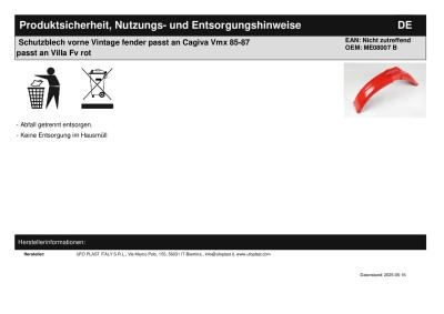 Titel: | Schutzblech vorne Vintage fender passt an Cagiva Vmx 85-87 passt an Villa Fv rot |
