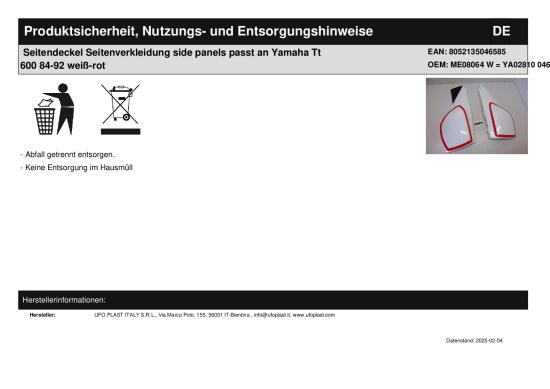 | Titel: | Seitendeckel Verkleidung side panels passt an Yamaha Tt 600 84-92 2. Wahl w-rot |