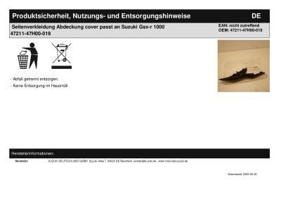 Titel: | Seitenverkleidung Abdeckung cover passt an Suzuki Gsx-r 1000 47211-47H00-019 |