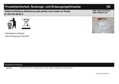 Titel: | Seitenverkleidung Abdeckung side panels cover passt an Honda Xr 250 450 96-06 w |
