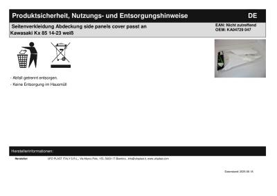 Titel: | Seitenverkleidung Abdeckung side panels cover passt an Kawasaki Kx 85 14-23 weiß |