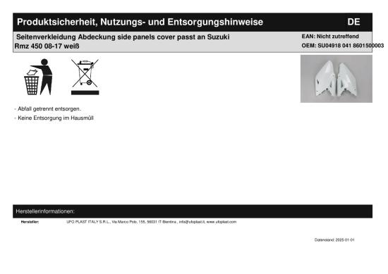 Titel: | Seitenverkleidung Abdeckung side panels cover passt an Suzuki Rmz 450 08-17 sw |