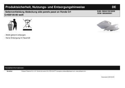 Titel: | Seitenverkleidung Abdeckung side panels passt an Honda Crf Cr450f 05-06 weiß |