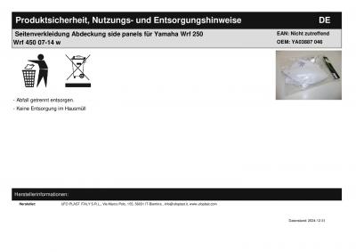 Seitenverkleidung Abdeckung side panels passt an Yamaha Wrf 250 Wrf 450 07-14 w