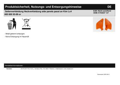 Titel: | Seitenverkleidung Heckverkleidung side panels passt an Ktm Lc4 400 600 93-99 or |