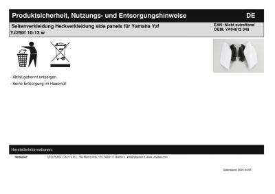 Titel: | Seitenverkleidung Heckverkleidung side panels passt an Yamaha Yzf Yz250f 10-13 w |