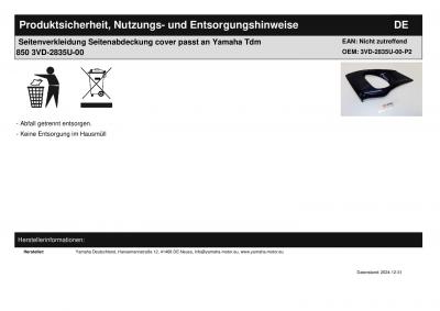 Seitenverkleidung Seitenabdeckung cover passt an Yamaha Tdm 850 3VD-2835U-00