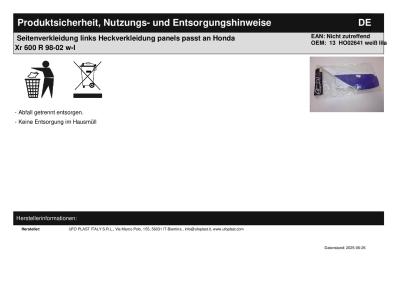 Titel: | Seitenverkleidung links Heckverkleidung panels passt an Honda Xr 600 R 98-02 w-l |