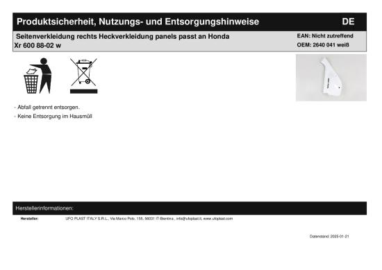 | Titel: | Seitenverkleidung rechts Heckverkleidung panel passt an Honda Xr 600 88-02 rot |