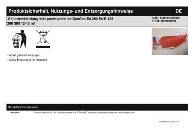 Titel: | Seitenverkleidung side panel passt an GasGas Ec 250 Ec-E 125 200 300 12-13 rot |