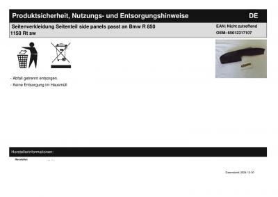 Titel: | Seitenverkleidung Seitenteil side panels passt an Bmw R 850 1150 Rt sw |