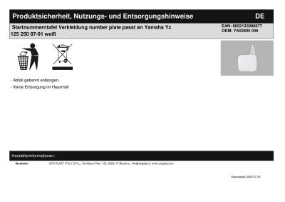 Titel: | Startnummerntafel Verkleidung number plate passt an Yamaha Yz 125 250 87-91 weiß |