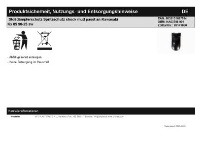 | Titel: | Stoßdämpferschutz Spritzschutz shock mud passt an Kawasaki Kx 85 98-25 sw |