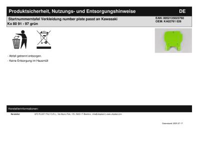 Titel: | Startnummerntafel Verkleidung number plate passt an Kawasaki Kx 80 91 - 97 grün |