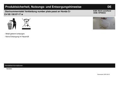 Titel: | Startnummerntafel Verkleidung number plate passt an Honda Cr Crf 85 150 07-17 w |