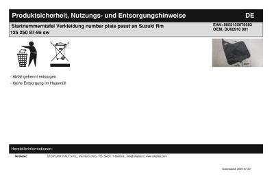Titel: | Startnummerntafel Verkleidung number plate passt an Suzuki Rm 125 250 87-95 sw |