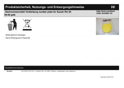 Titel: | Startnummerntafel Verkleidung number plate passt an Suzuki Rm 85 00-08 gelb |